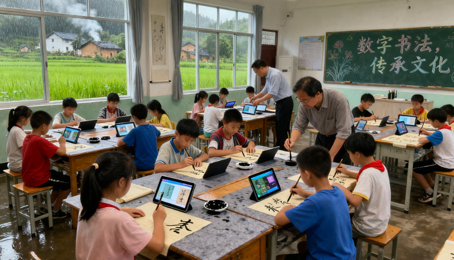在四川广元市青川县骑马乡中心小学,六年级学生王小雨正对着数字书法屏临摹《弟子规》。屏幕上,颜体楷书的笔画动态演示,她的手指握着智能毛笔,跟着提示调整运笔速度,每写对一个笔画,屏幕就会亮起一颗小星星。“以前书法课只能照着课本描红,不知道自己写得对不对,现在有了这个‘会说话的老师’,我知道怎么把‘横’写得平稳,把‘竖’写得笔直了。”王小雨的话,道出了乡村学生对数字书法教育的喜爱。我国乡村学校长期面临书...
